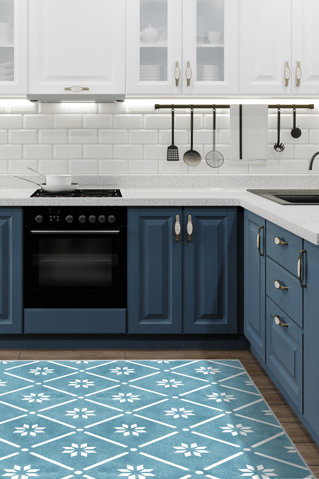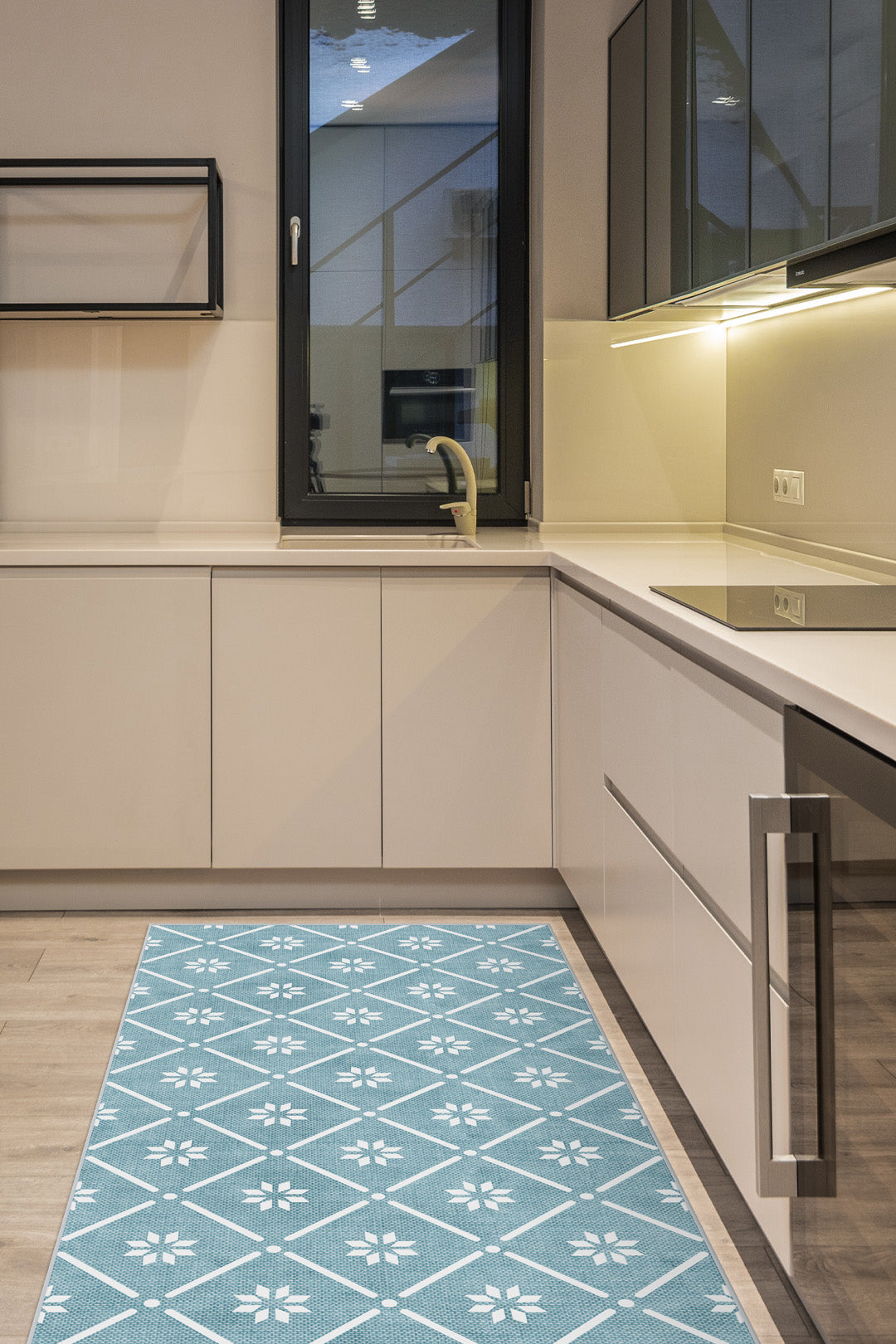 Find a rug that perfectly complements your kitchen units and adds a cosy touch to your kitchen.
